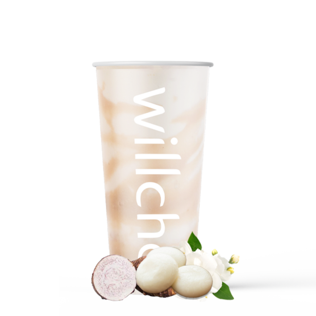 濃厚なタロのコクが広がるジャスミンミルクティーに、やわらかなおもちの食感をプラス。